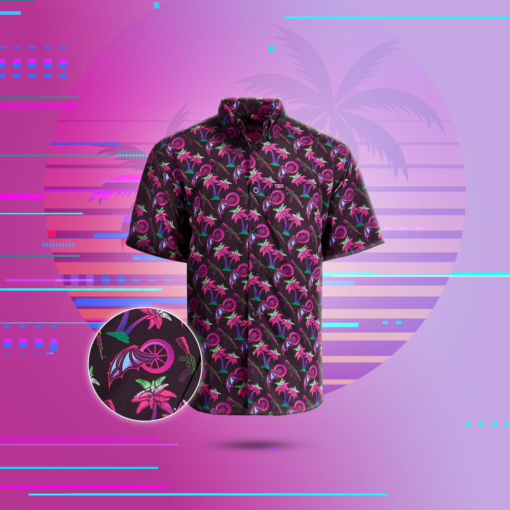 Add some color and flare to your closet with THE VICE button up party shirt! With a Miami Vice retro feel, you'll be sure to turn heads anywhere you go. Our button up shirts are completely custom from the fabric to the buttons. We hand selected a blend of fabrics to bring you our very own material cool-tech™ Its a 4 way stretch blend of fabrics for better movement and provides a cooling effect when hot. Lightweight, soft, versatile, shrink and wrinkle free material that will keep you looking good day or night!